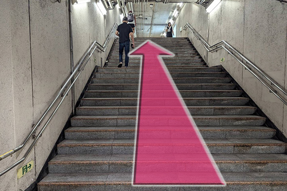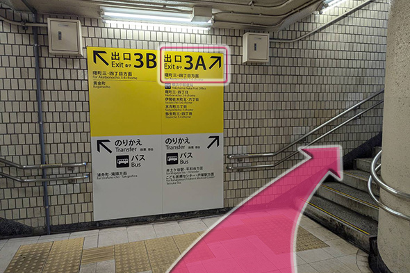 ④そのまま直進していただくと再度、3A出口の看板がみえますので右手に進んでいただき階段を上がってください。