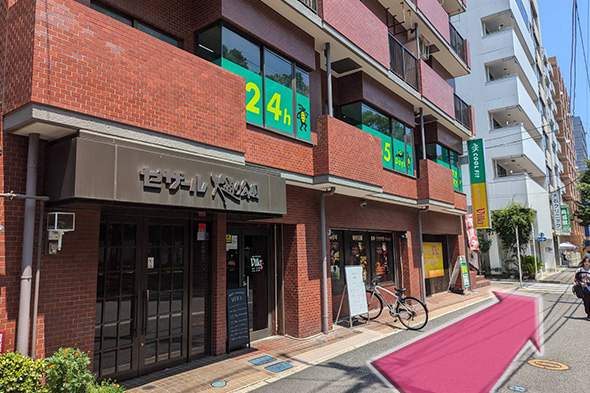①黄金町駅の改札を出ていただき右手に進みますとファミリーマートがすぐ見えます。